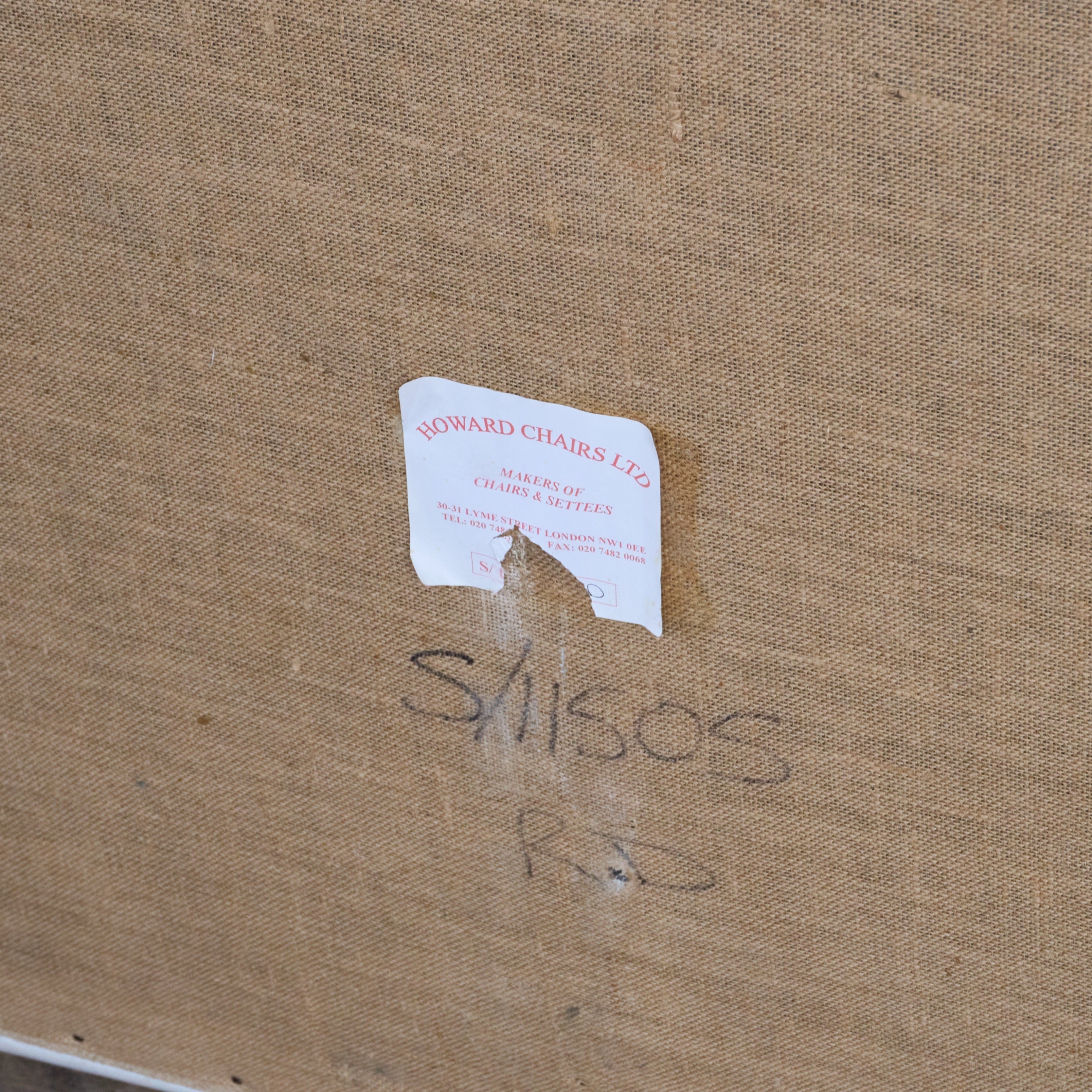 Howard Label present with matching code written to the hessian - and monogrammed ticking present.