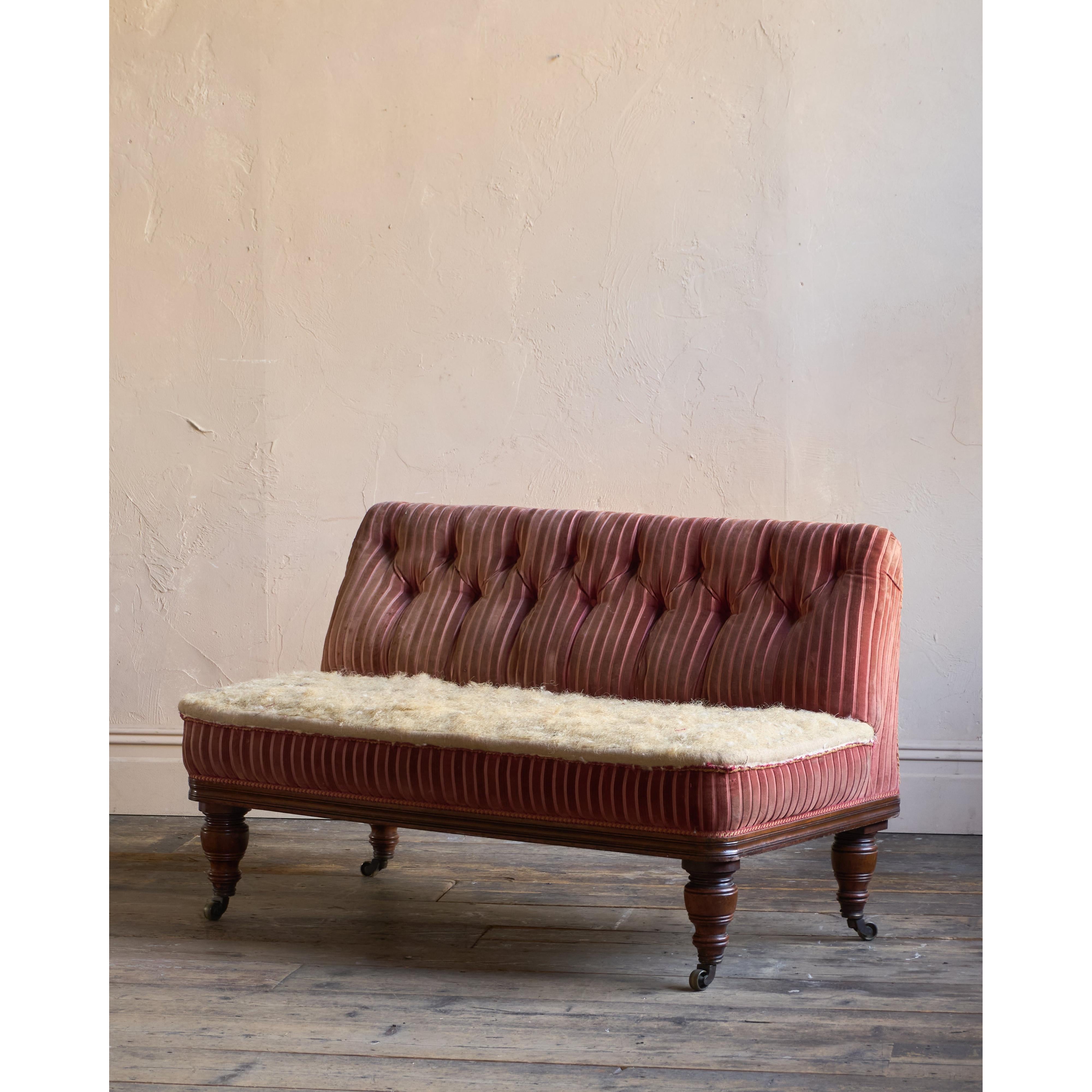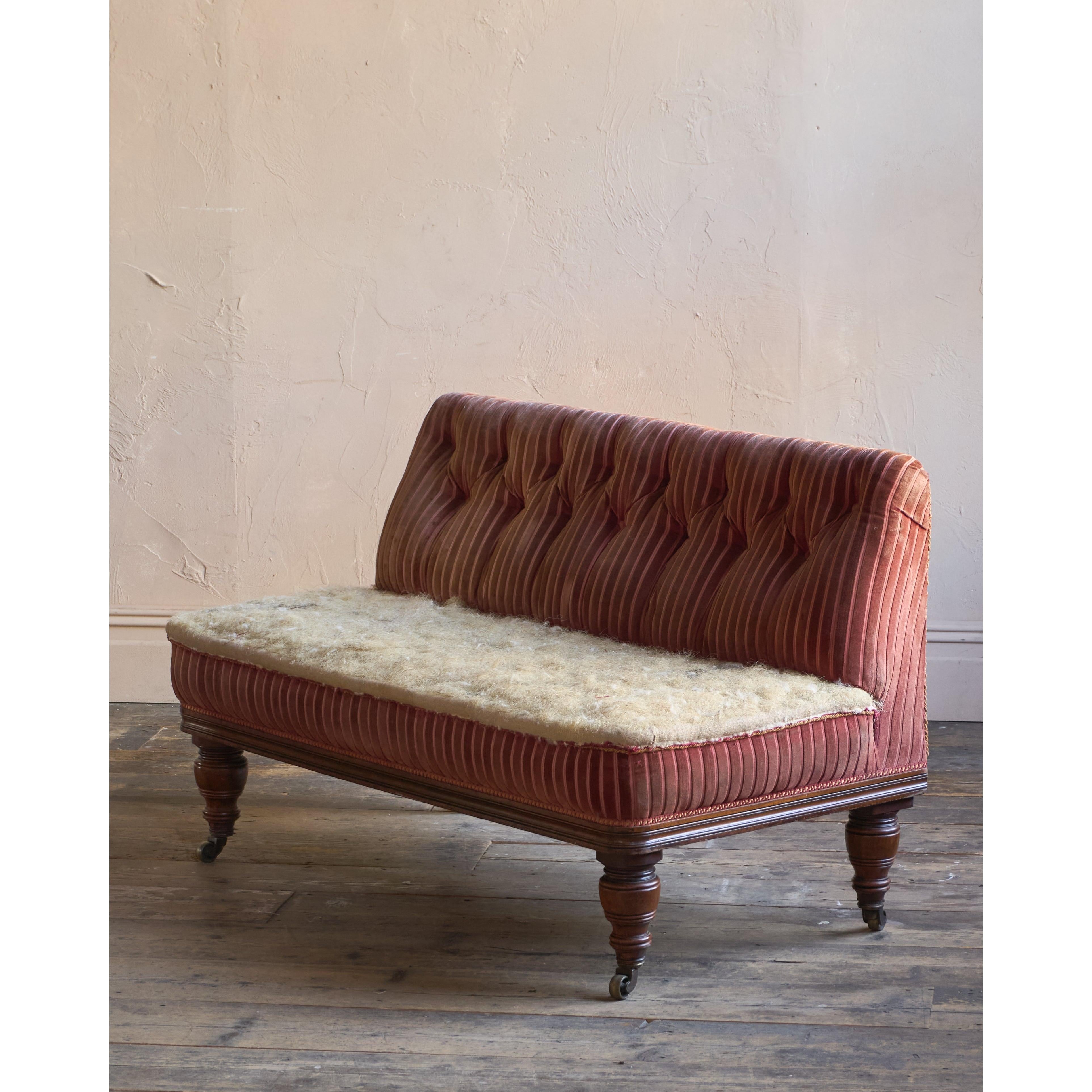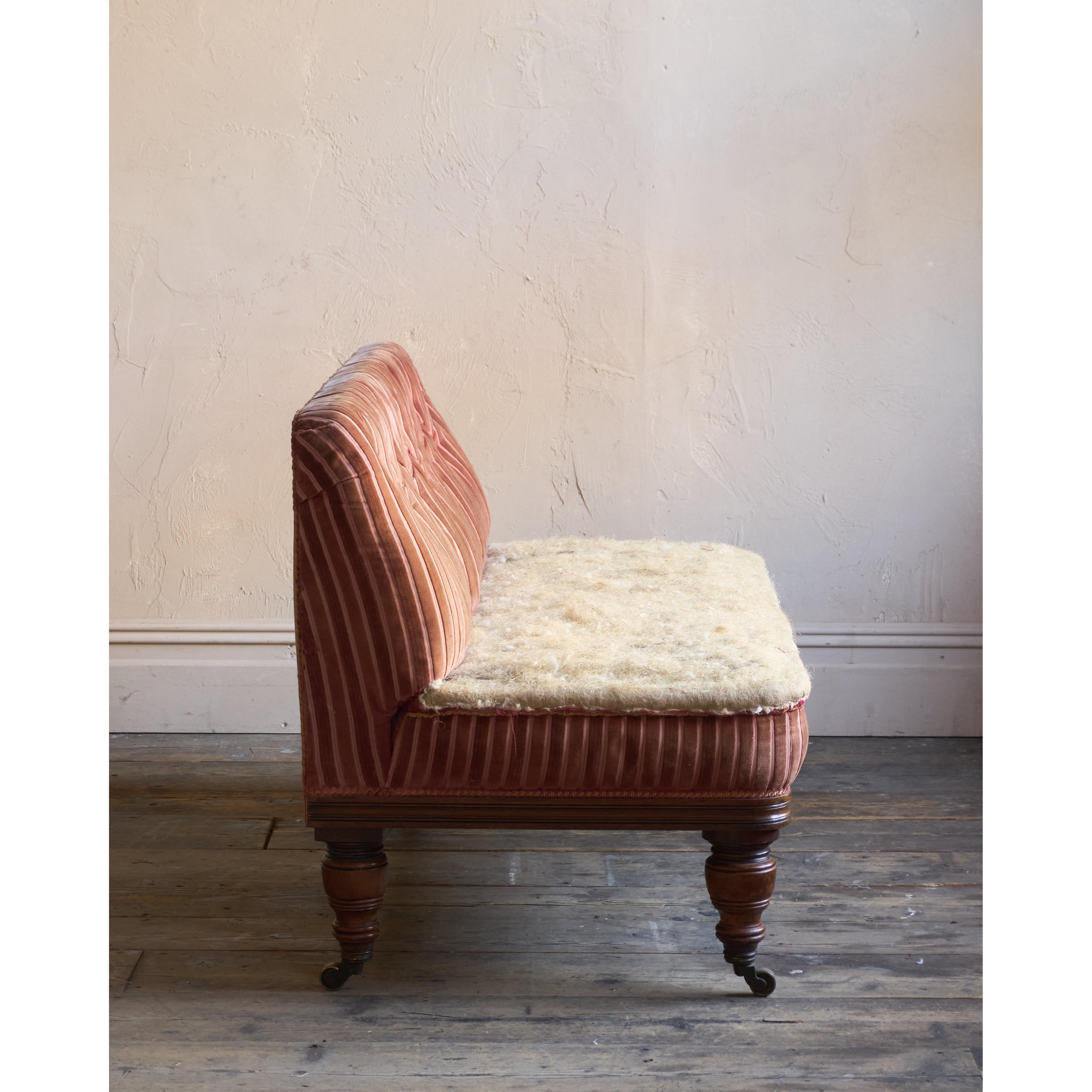 A 19th-century campaign banquette seat, traditionally upholstered throughout with a fully sprung seat and horsehair fillings.