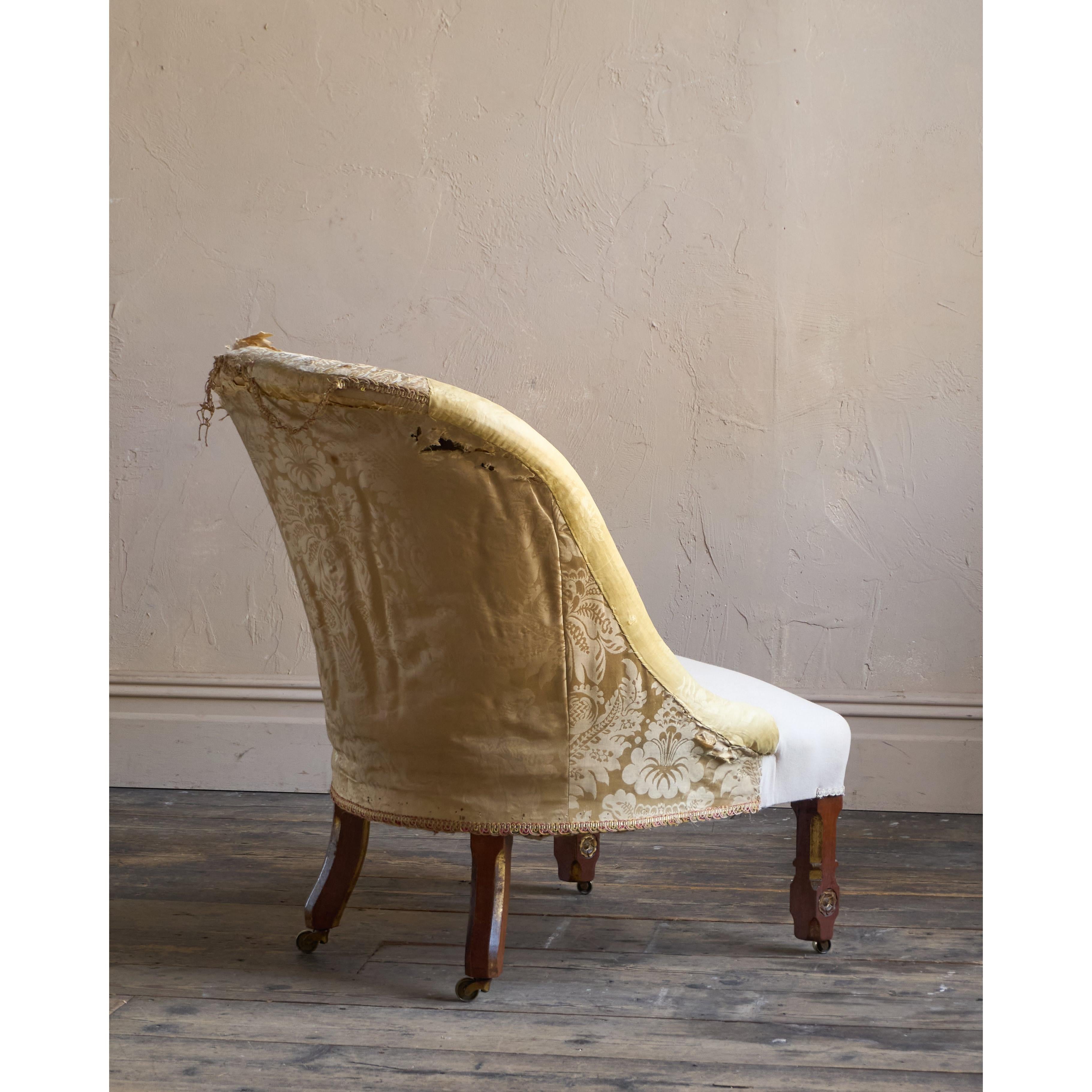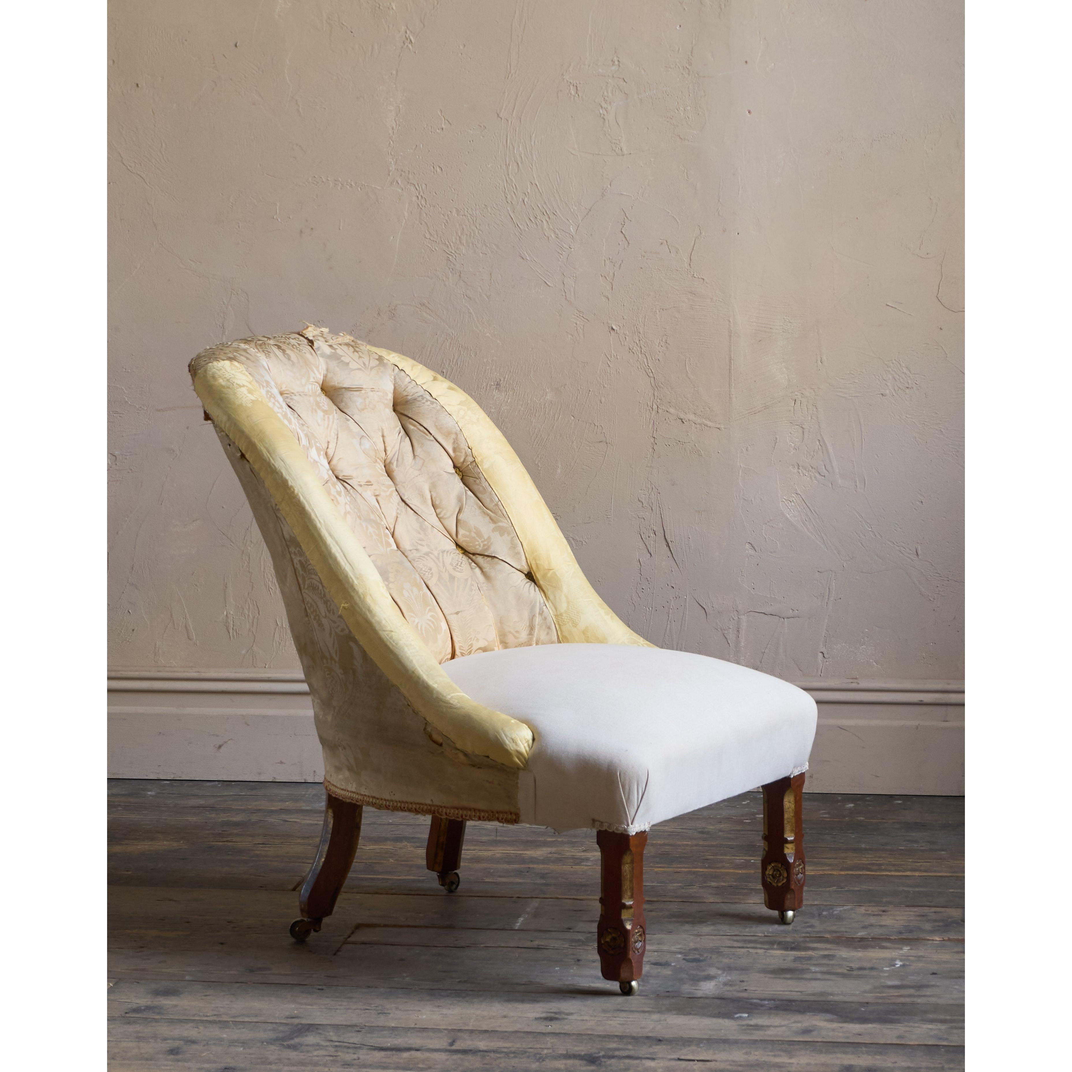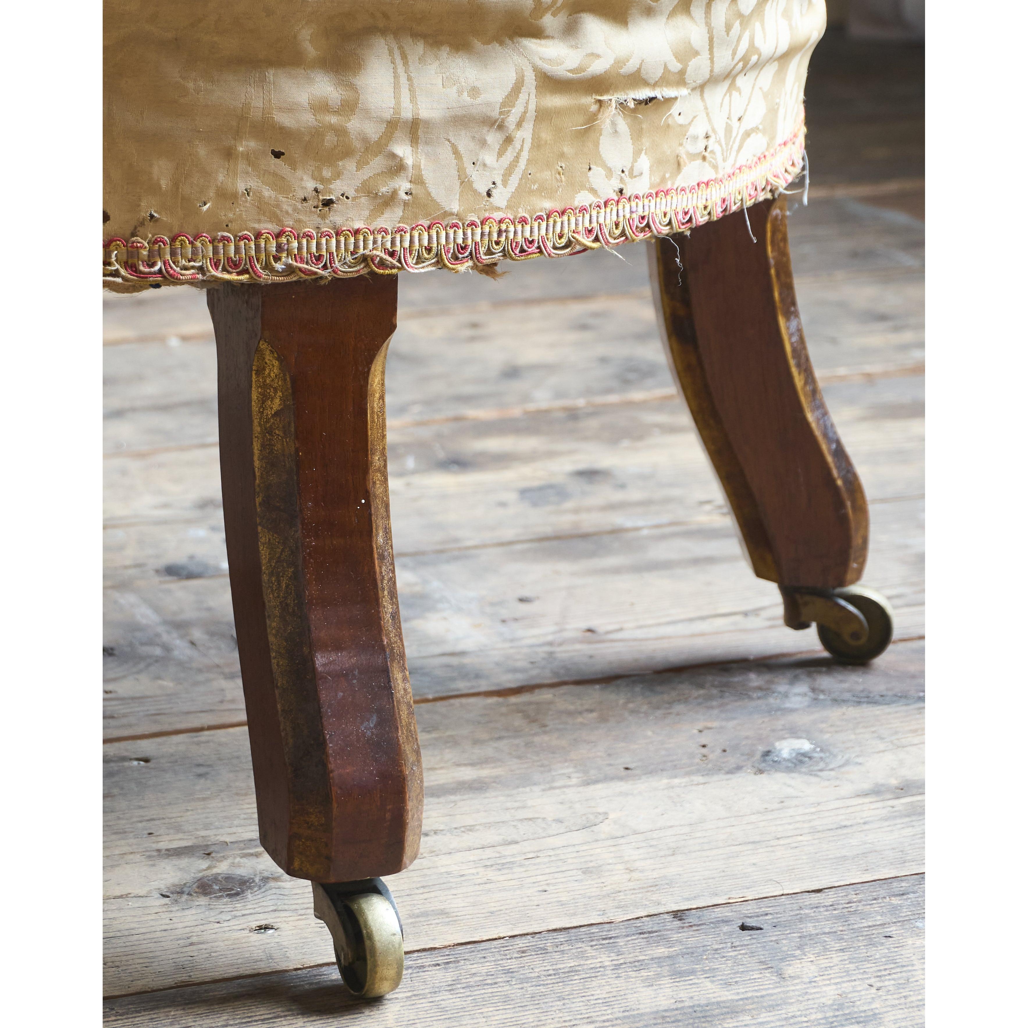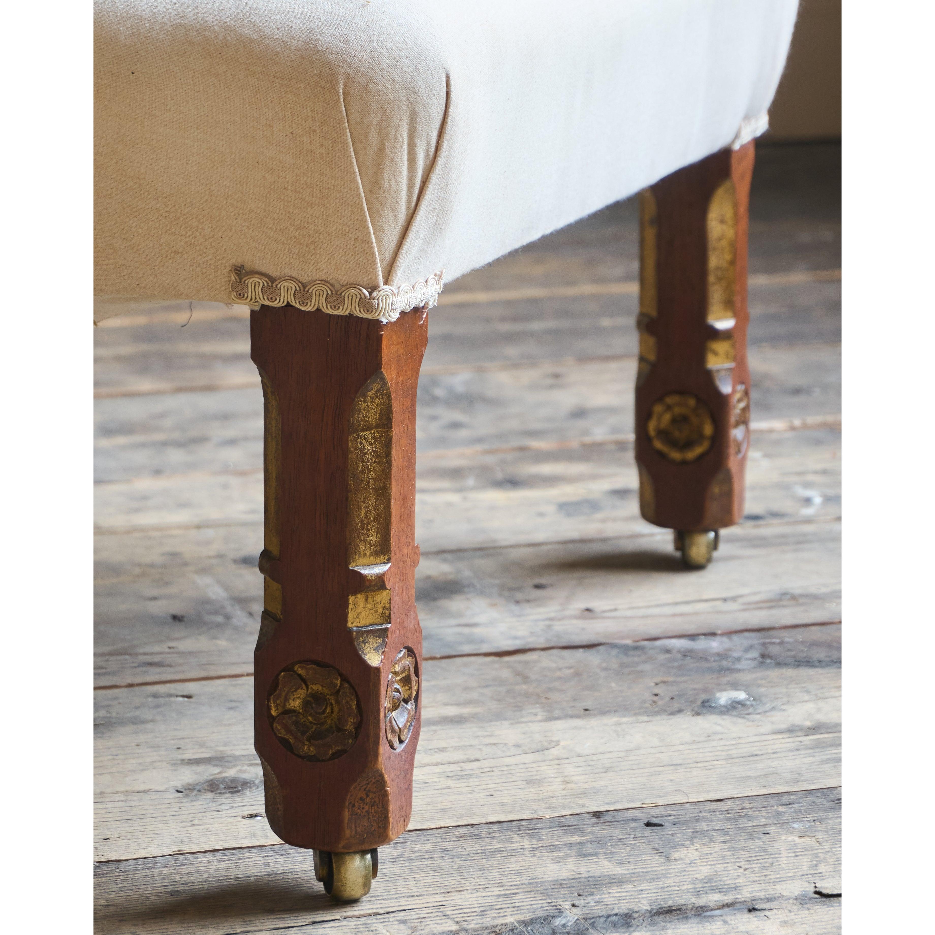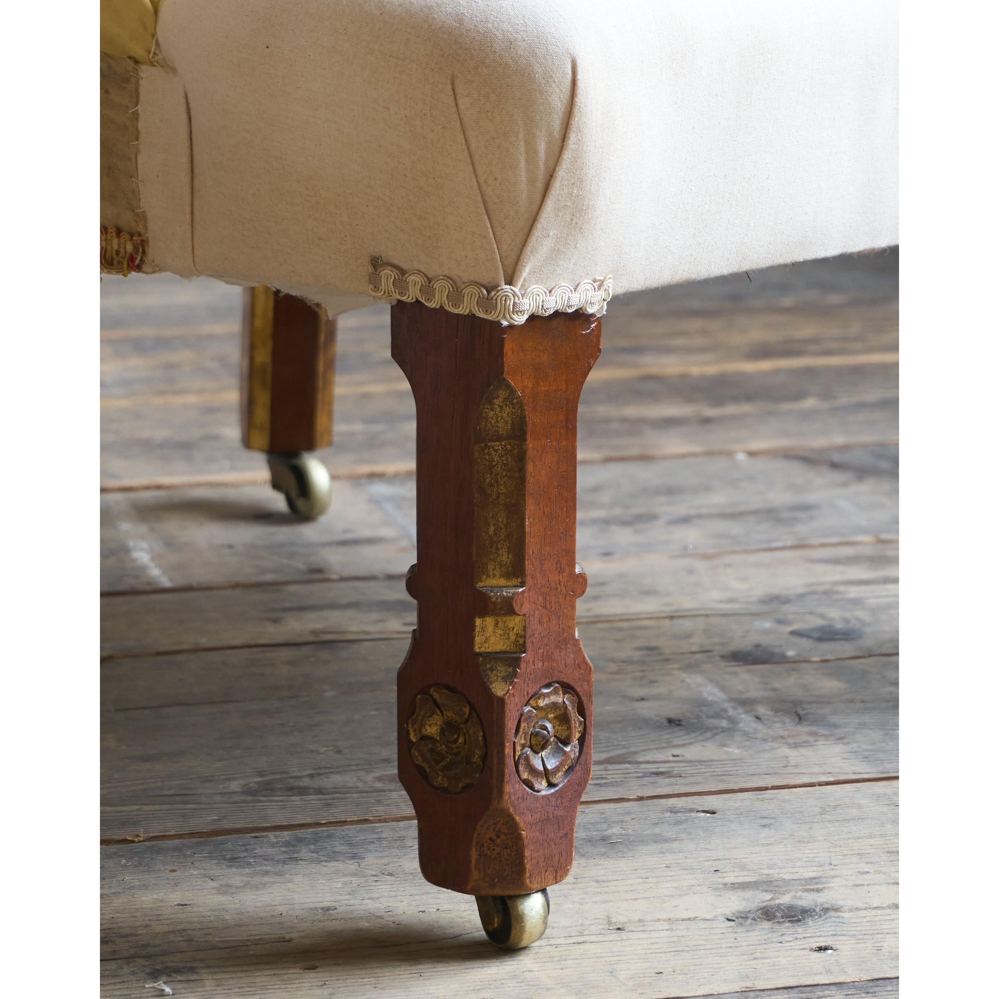 Having parcel gilt legs in the gothic revival manner and also with rosette carvings to the front legs which also have recessed castors all of which are cope castors.