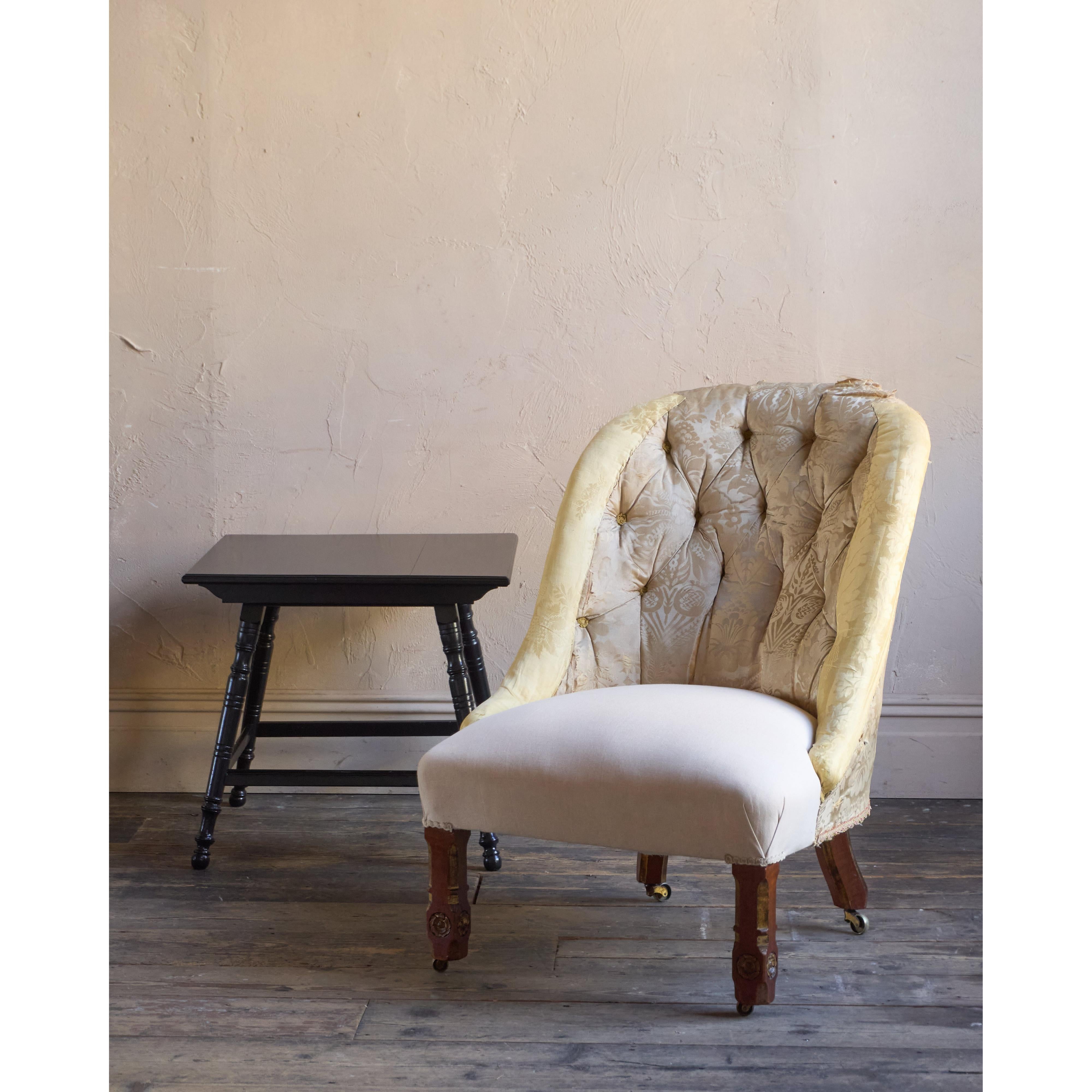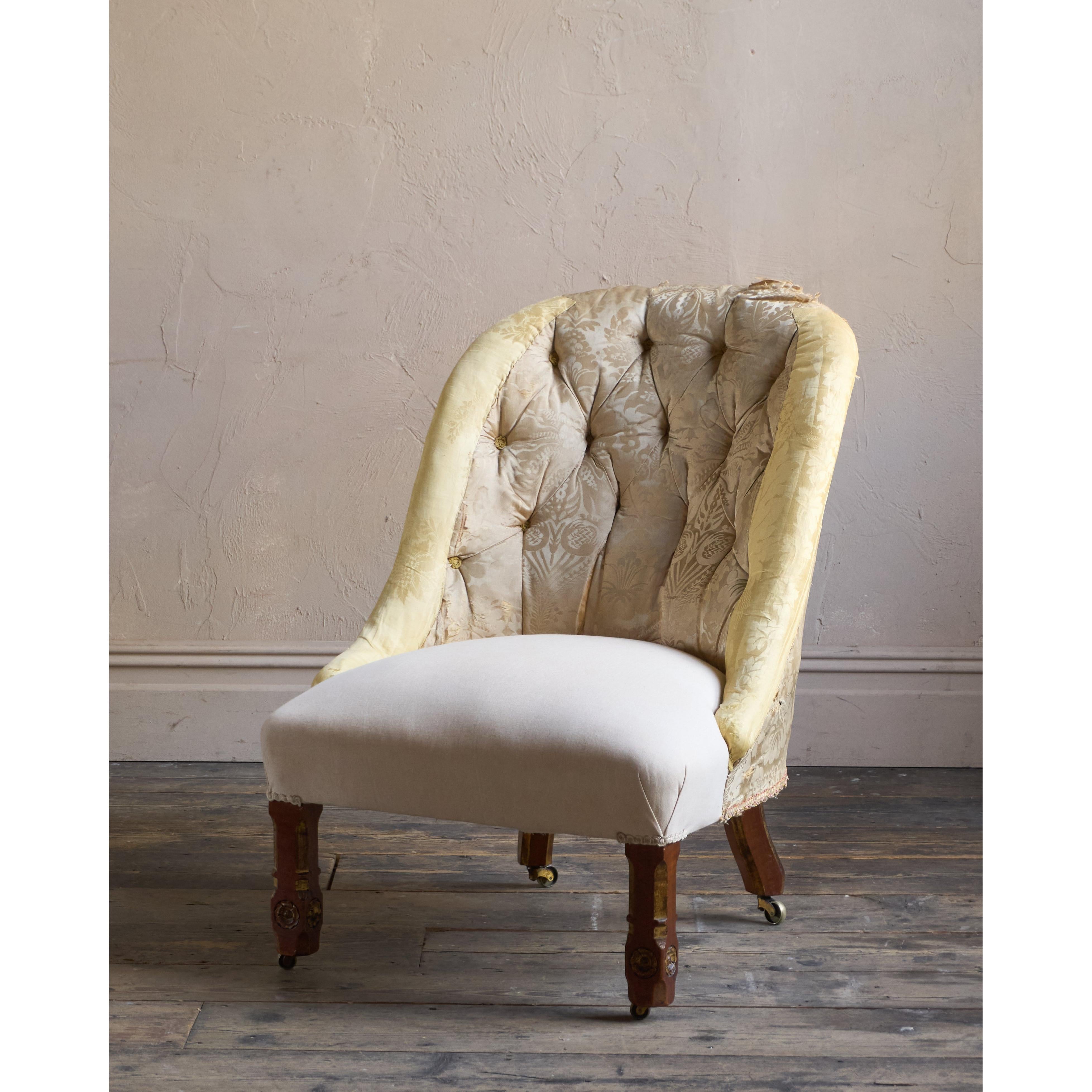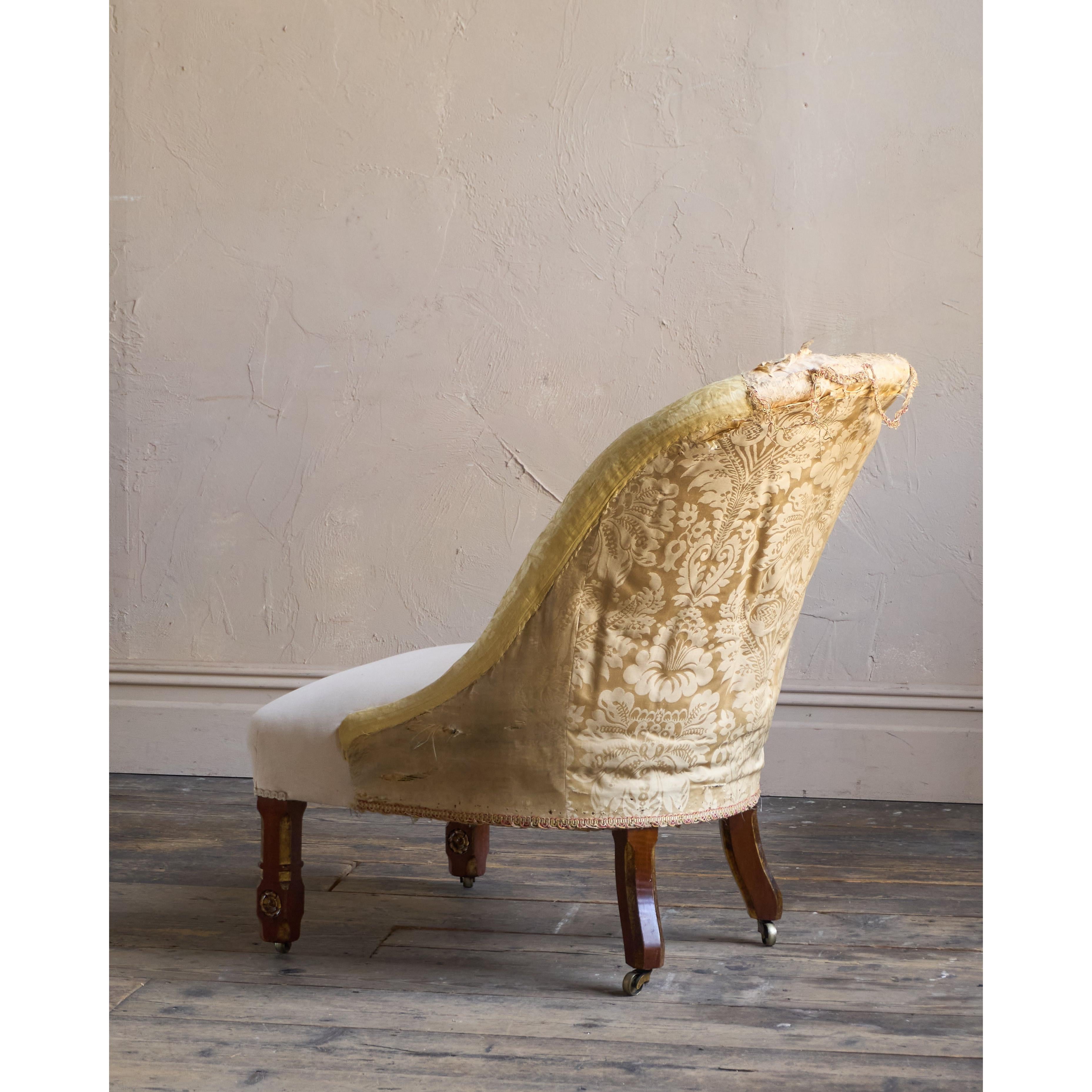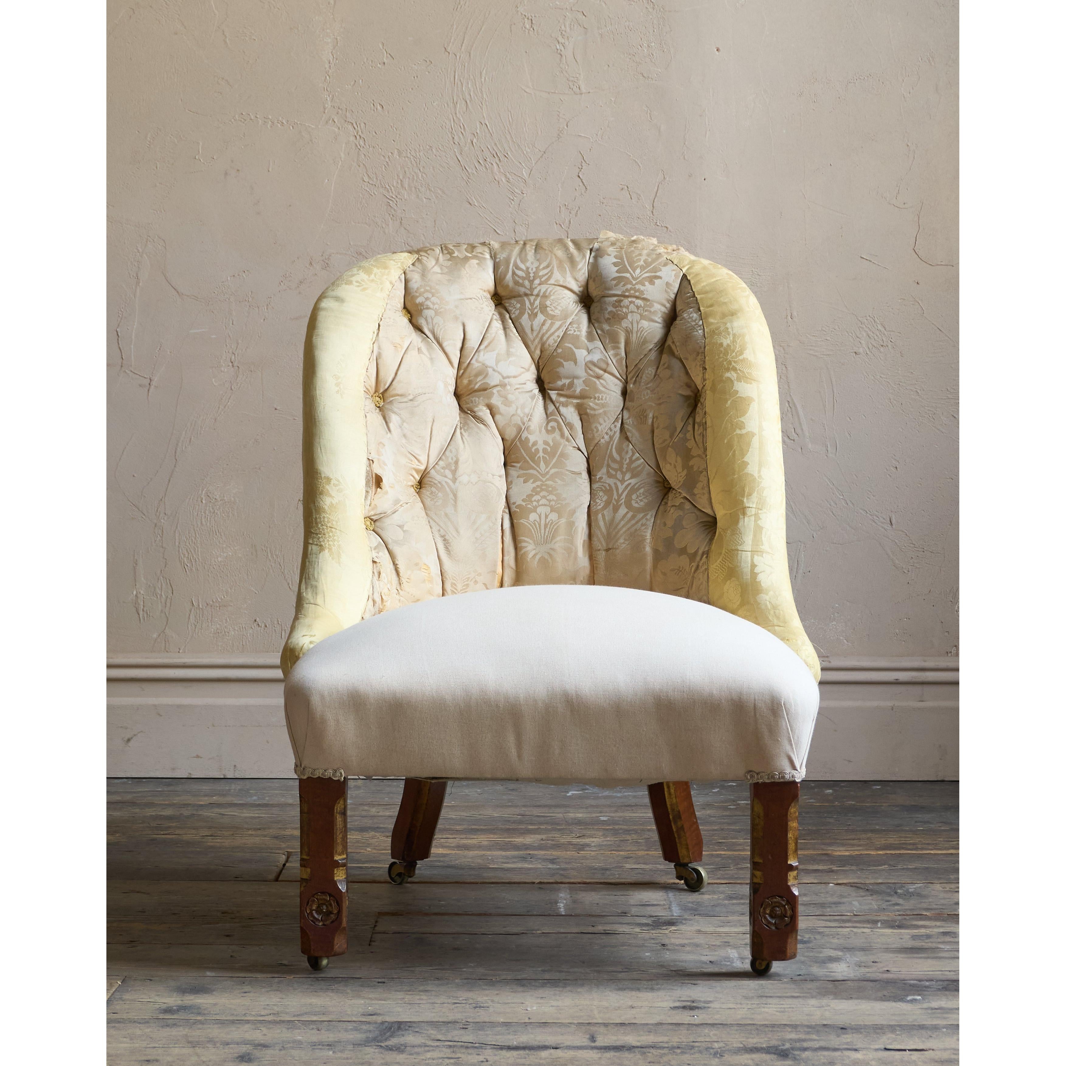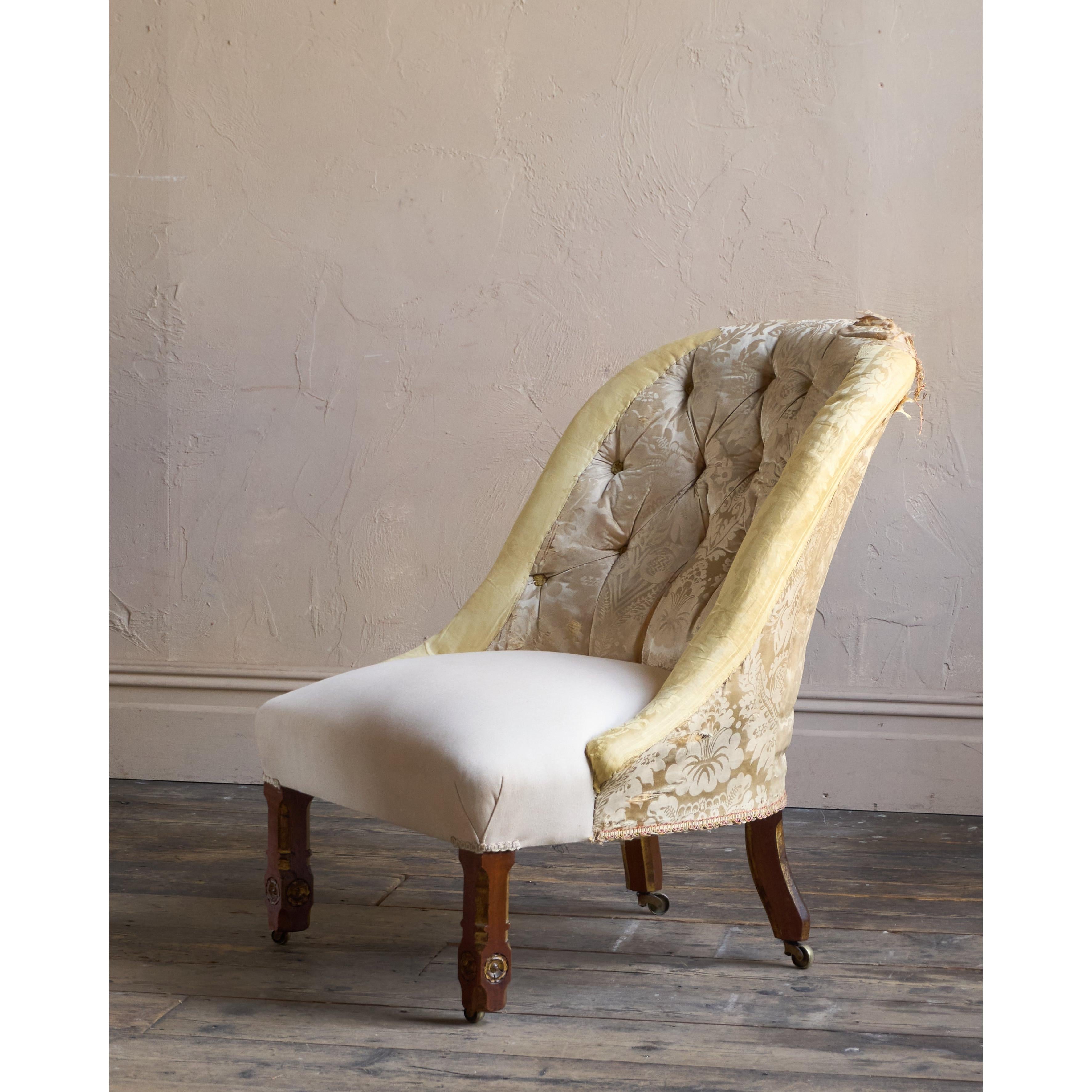 Having parcel gilt legs in the gothic revival manner and also with rosette carvings to the front legs which also have recessed castors all of which are cope castors.