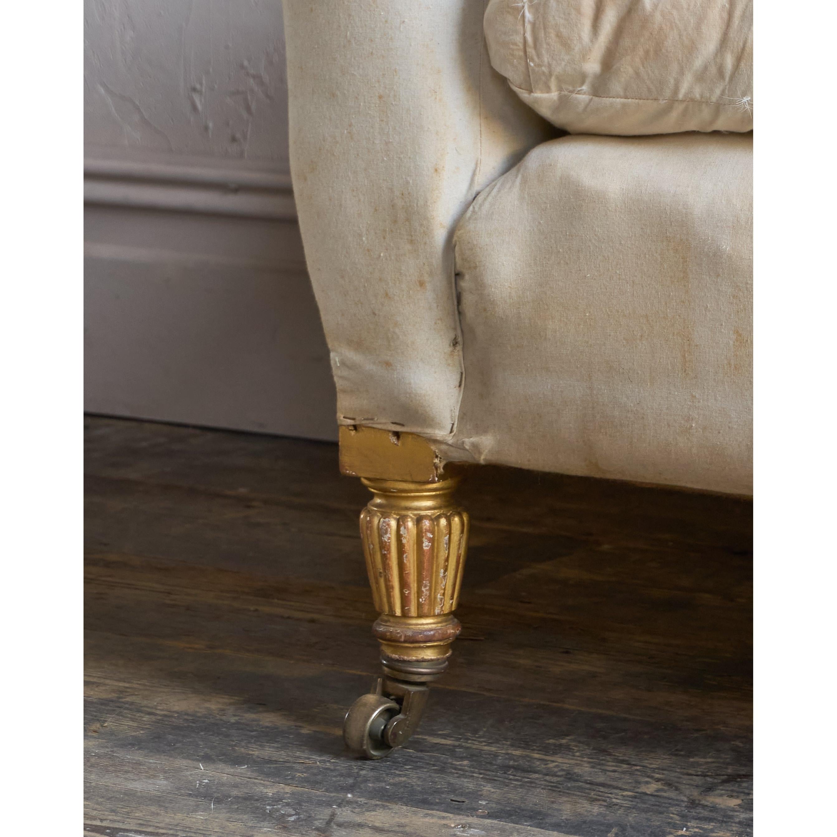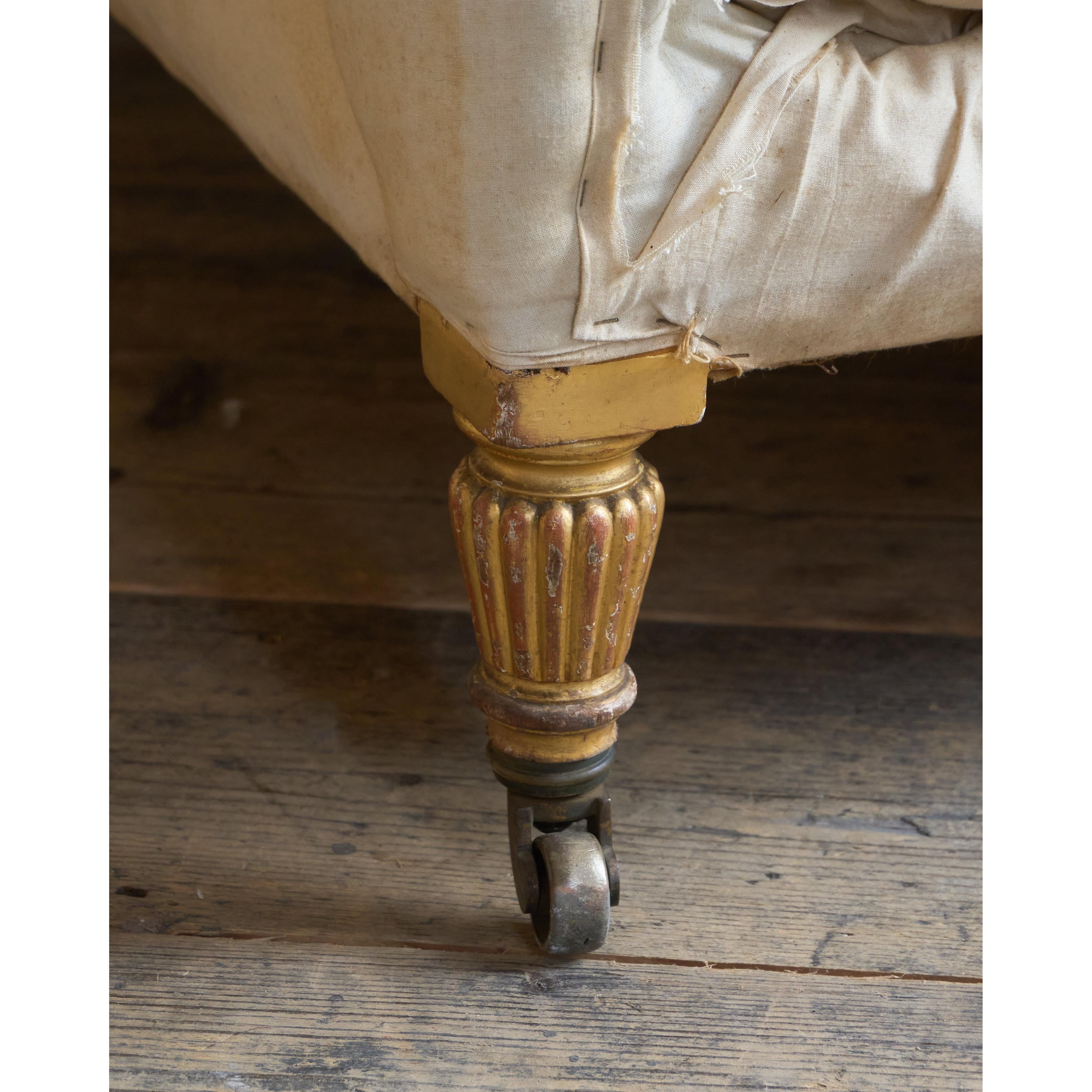 With three reeded legs to the front and three tapered, splayed legs to the back, retaining the original gilding throughout and the original Druce & Co stamped castors to all.