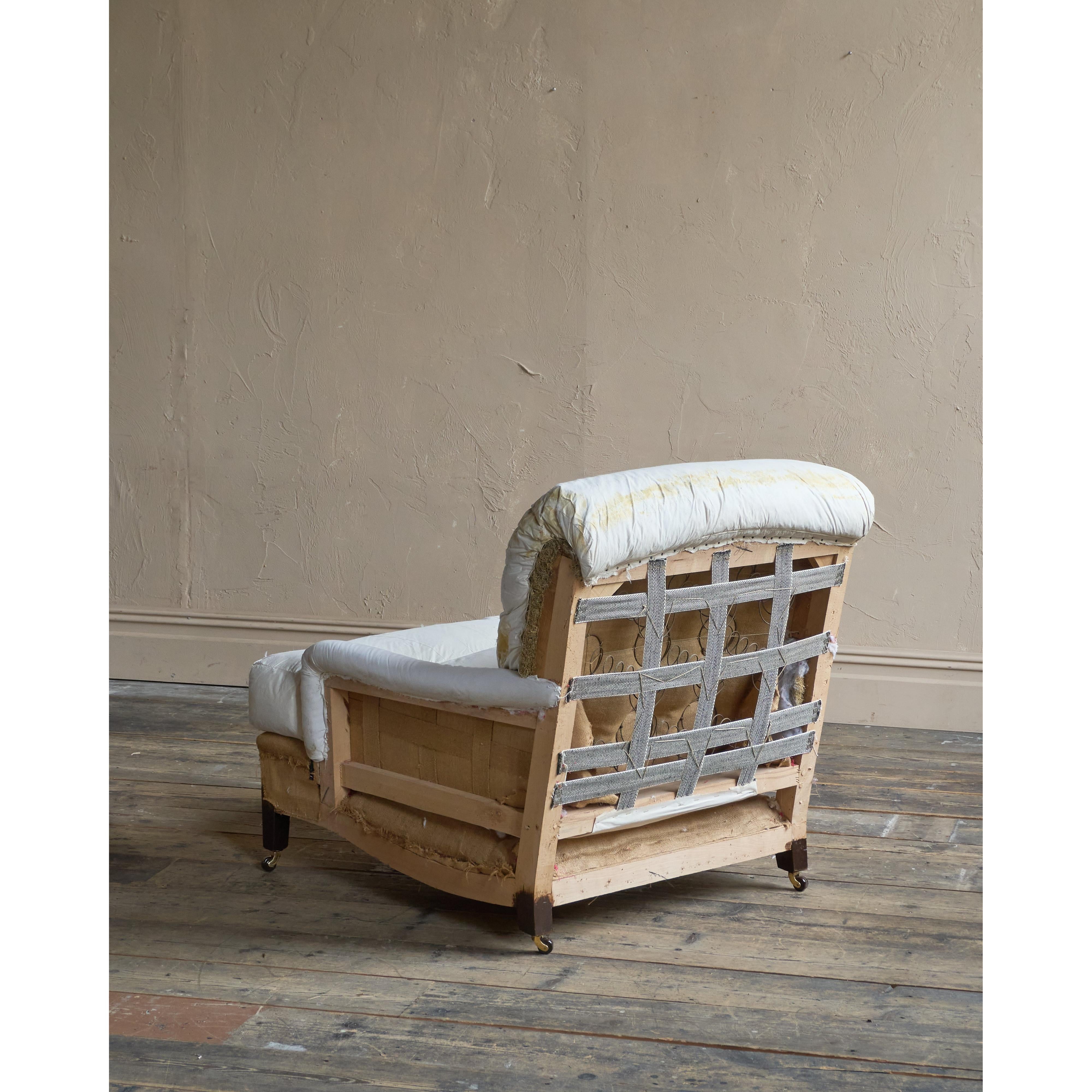 Traditional style upholstery- sprung seat and back, a modern take of this king of upholstery with rubberised horse hair used instead of horse hair and a firm front seat edge to the frame, which relies on a soft cushion, so this has a 7" deep feather cushion, also the back rest has a feather filling.