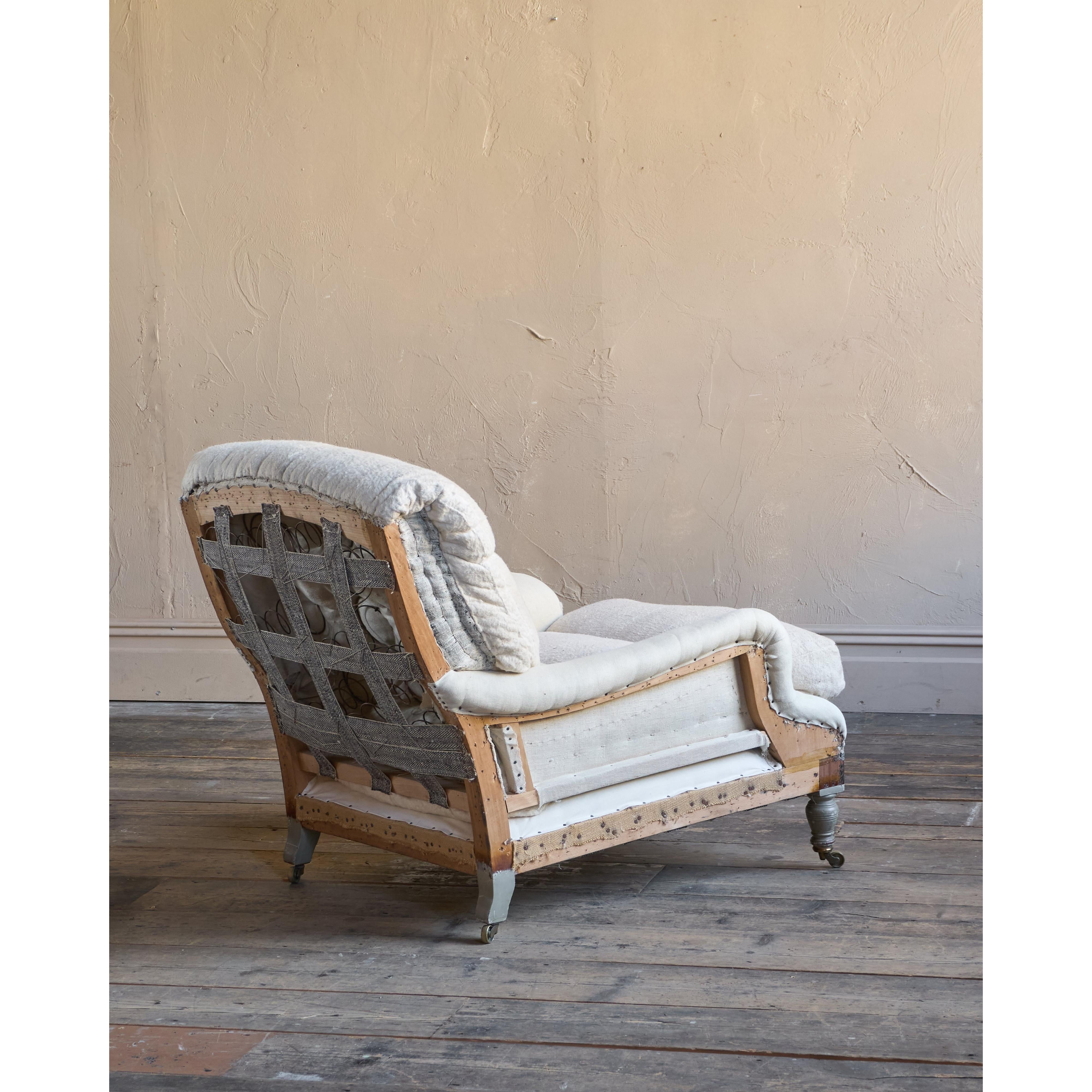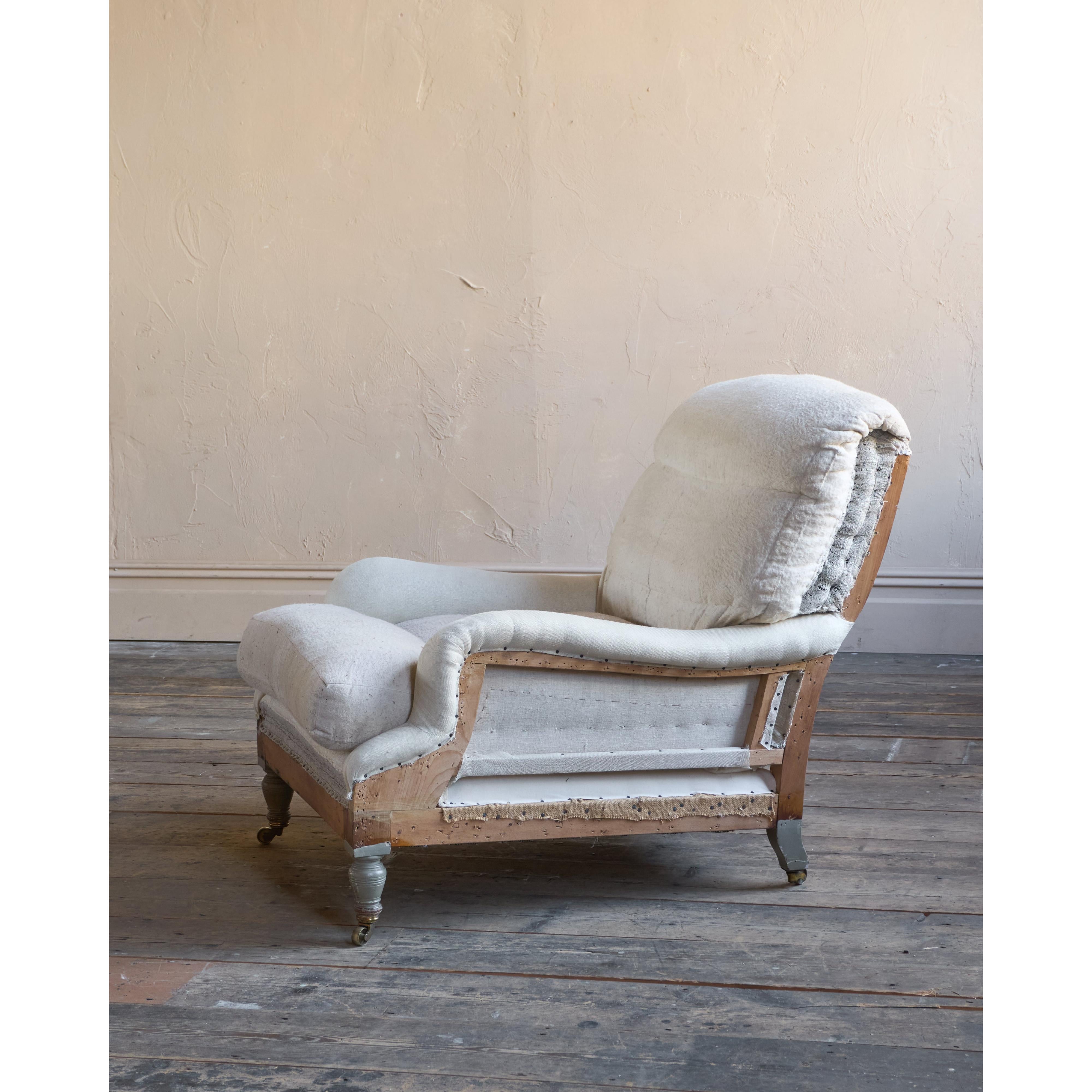 Now sympathetically restored to its undergarments, most of which is original traditional upholstery of an unusually high standard with ivory coloured horse hair, fine linen hessian and what I believe is fustian a high quality fabric with unusually deep and fur like pile.