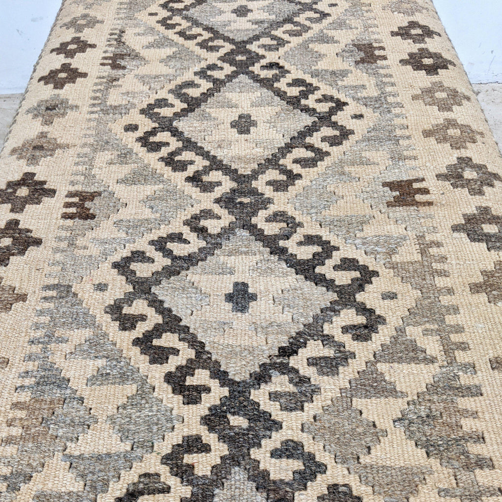 Khudrang has recently seen an increase in demand due to the fact that these kilims are made using the natural grey, cream and black colours of wool. The wool is not dyed. Therefore the name, Khudrang, which means 'own colour' or 'myself colour'