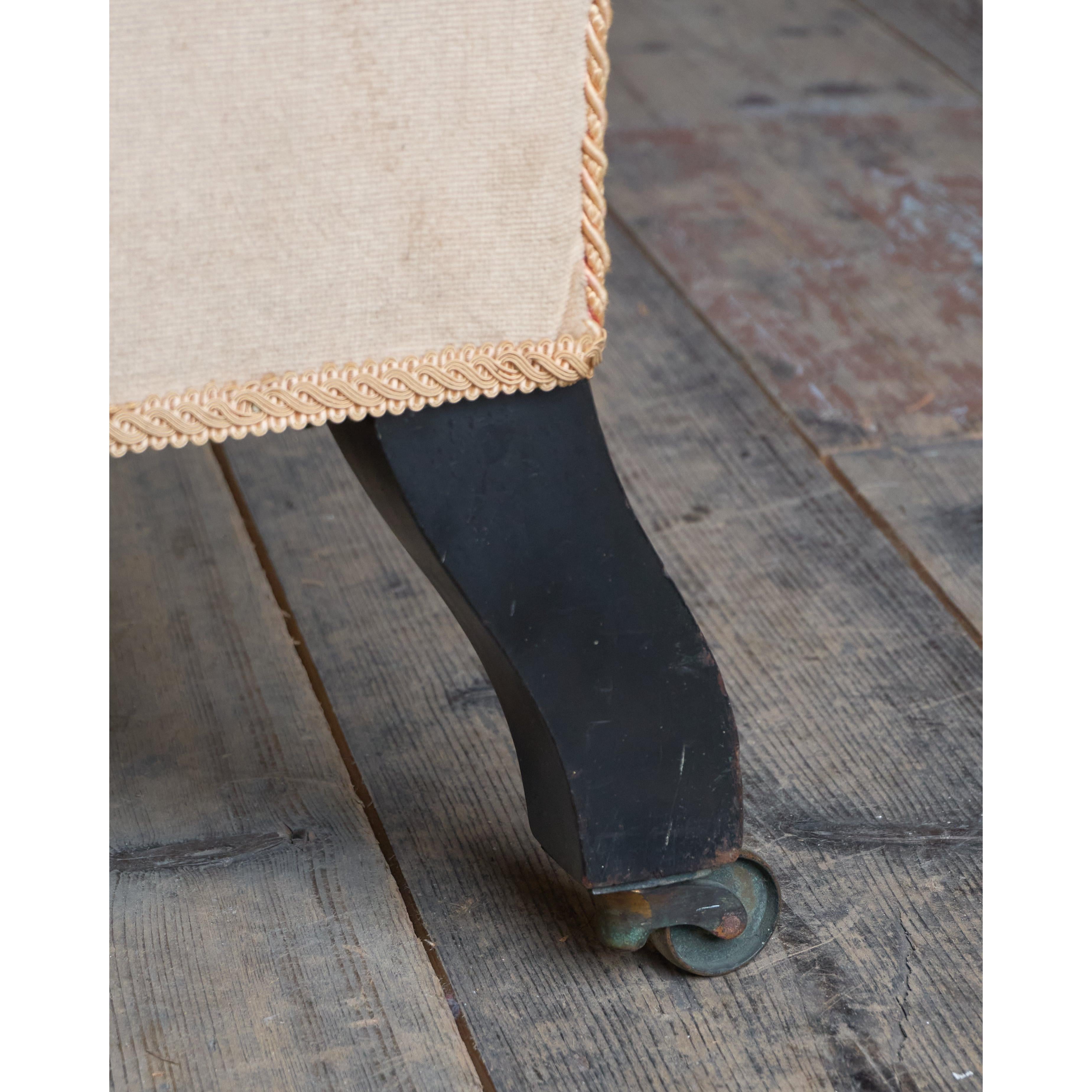 Dating from the aesthetic movement period, with ebonised and gilt front legs.