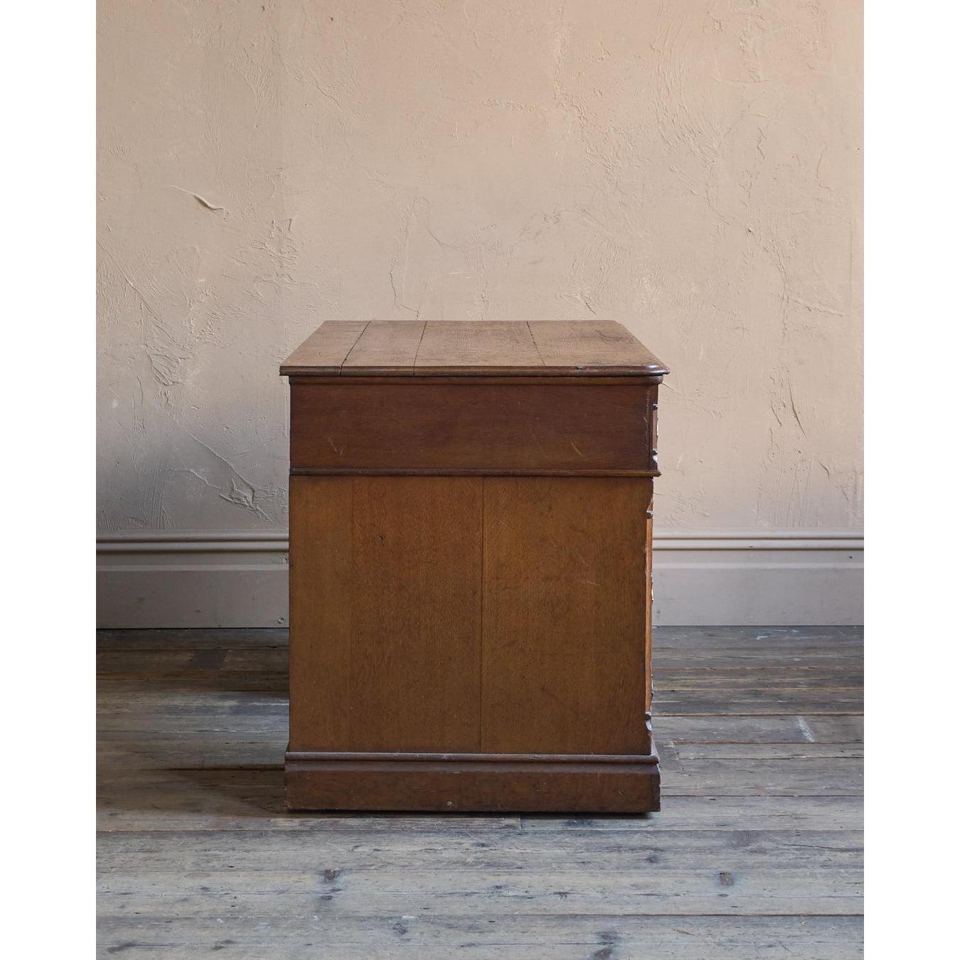Antique Parquetry Oak Pedestal Desk.