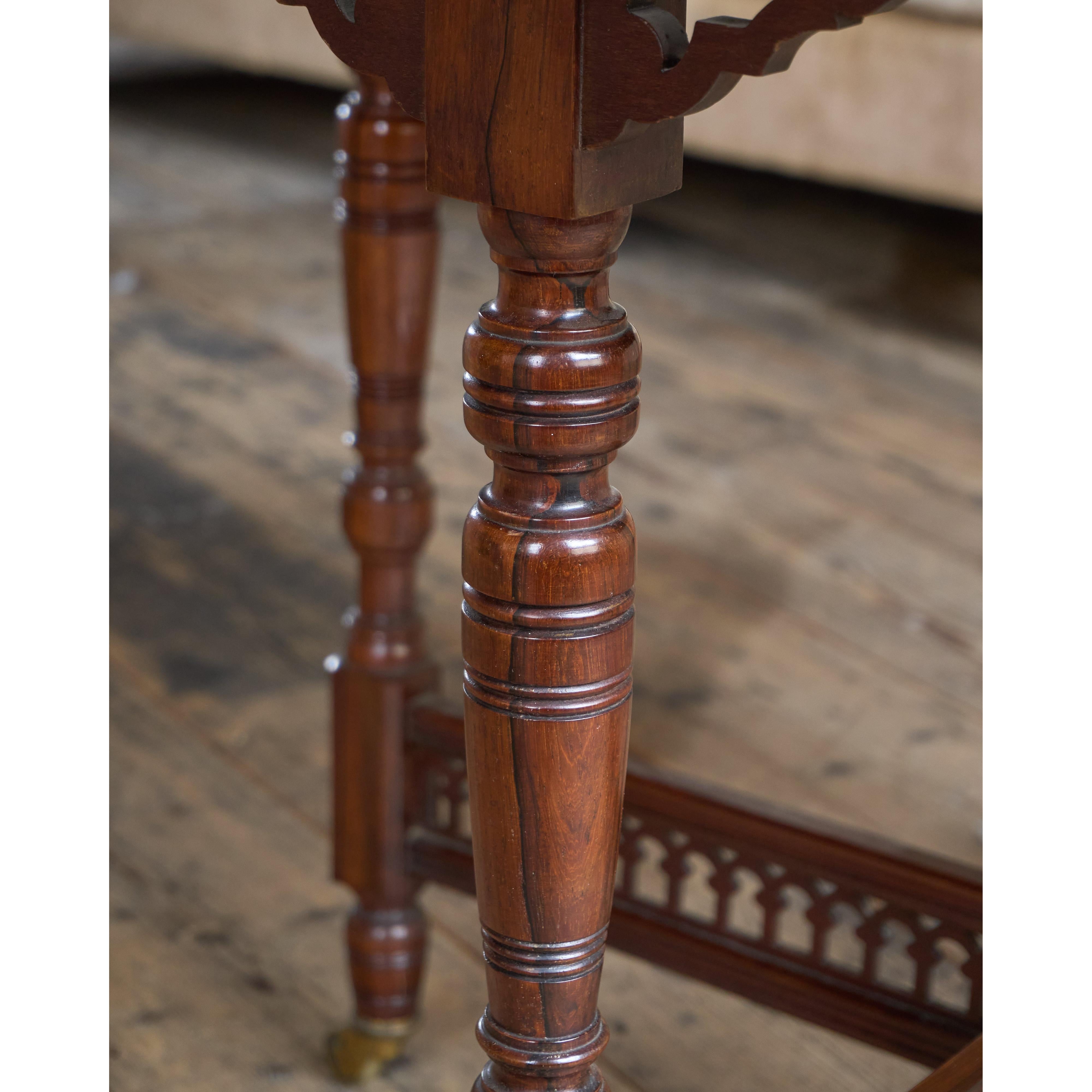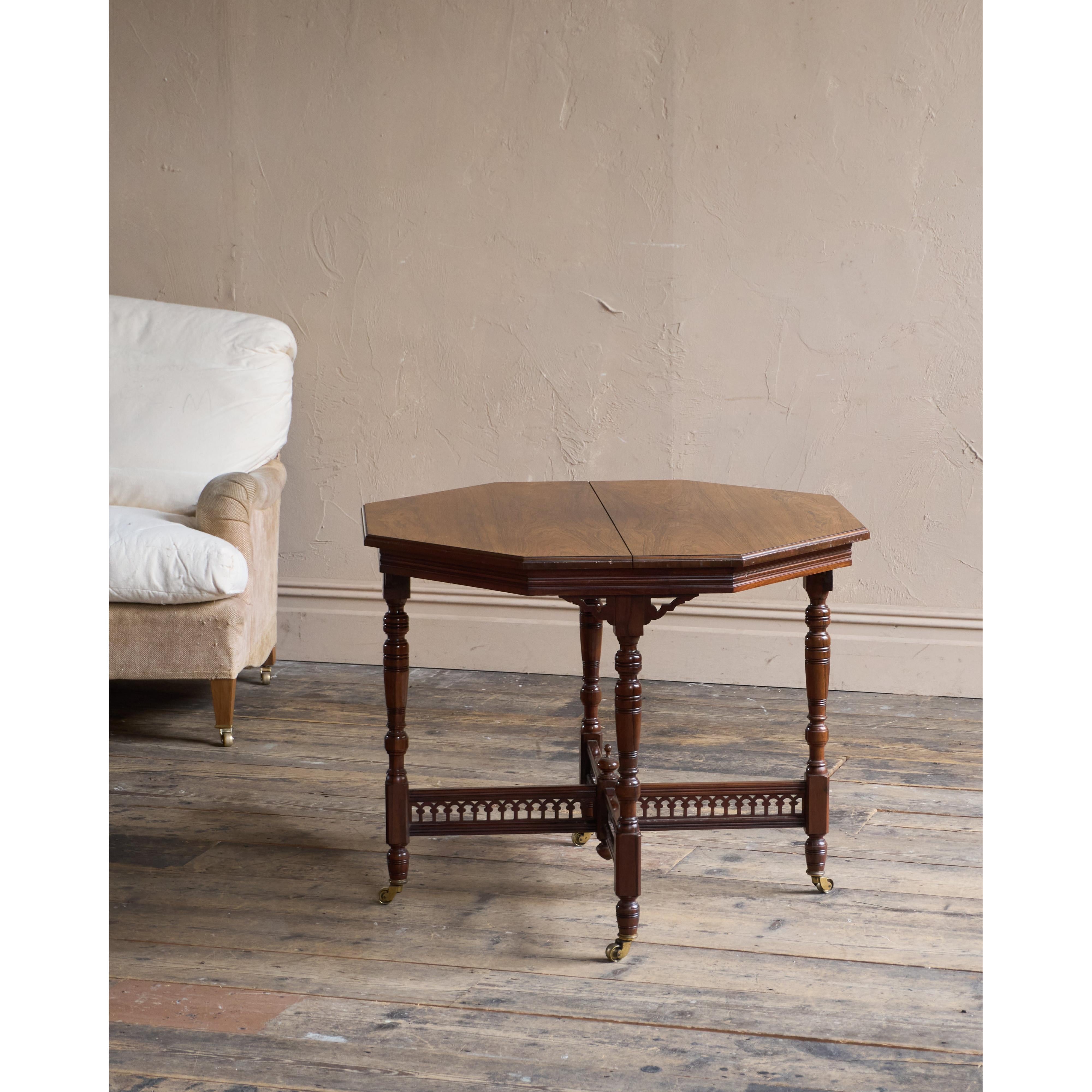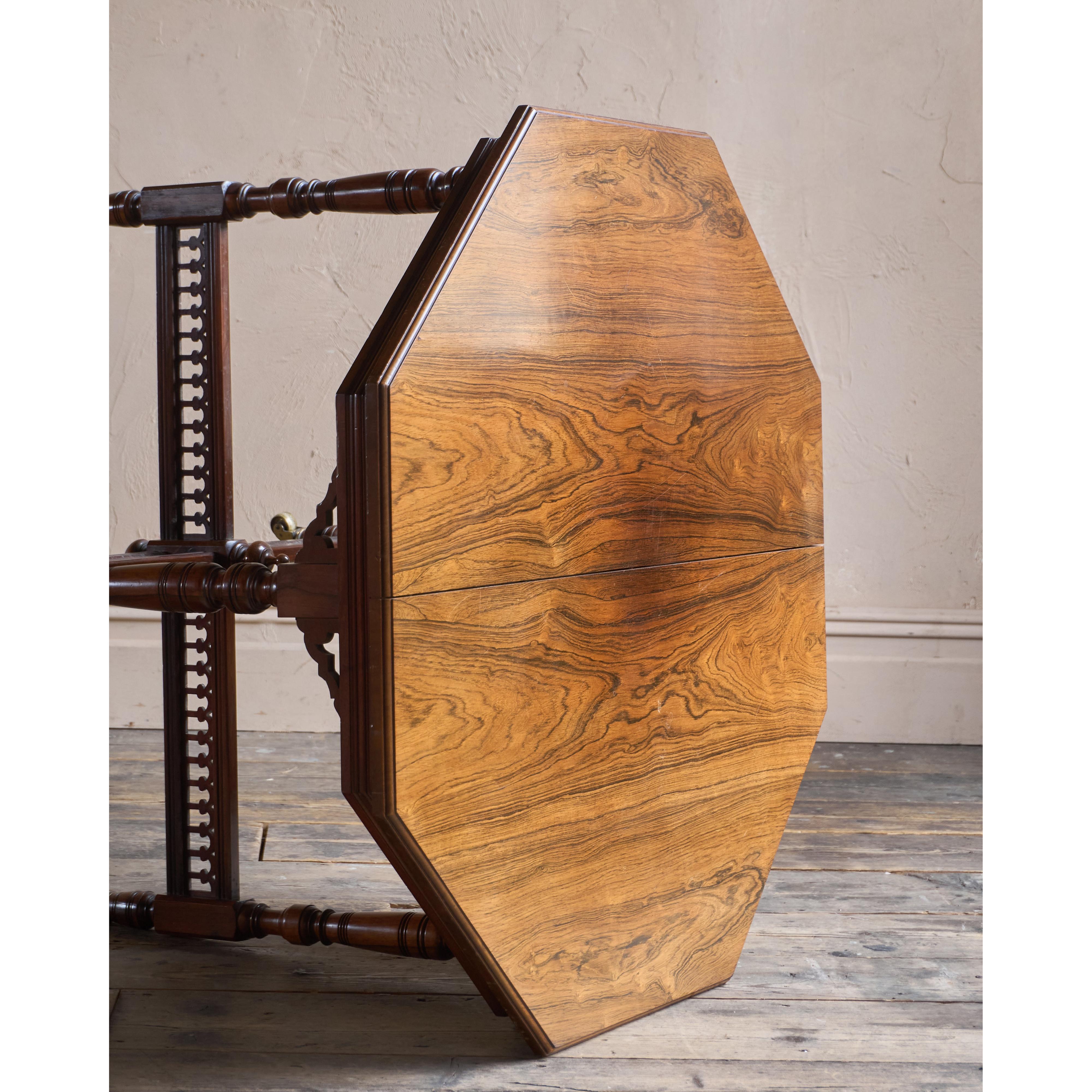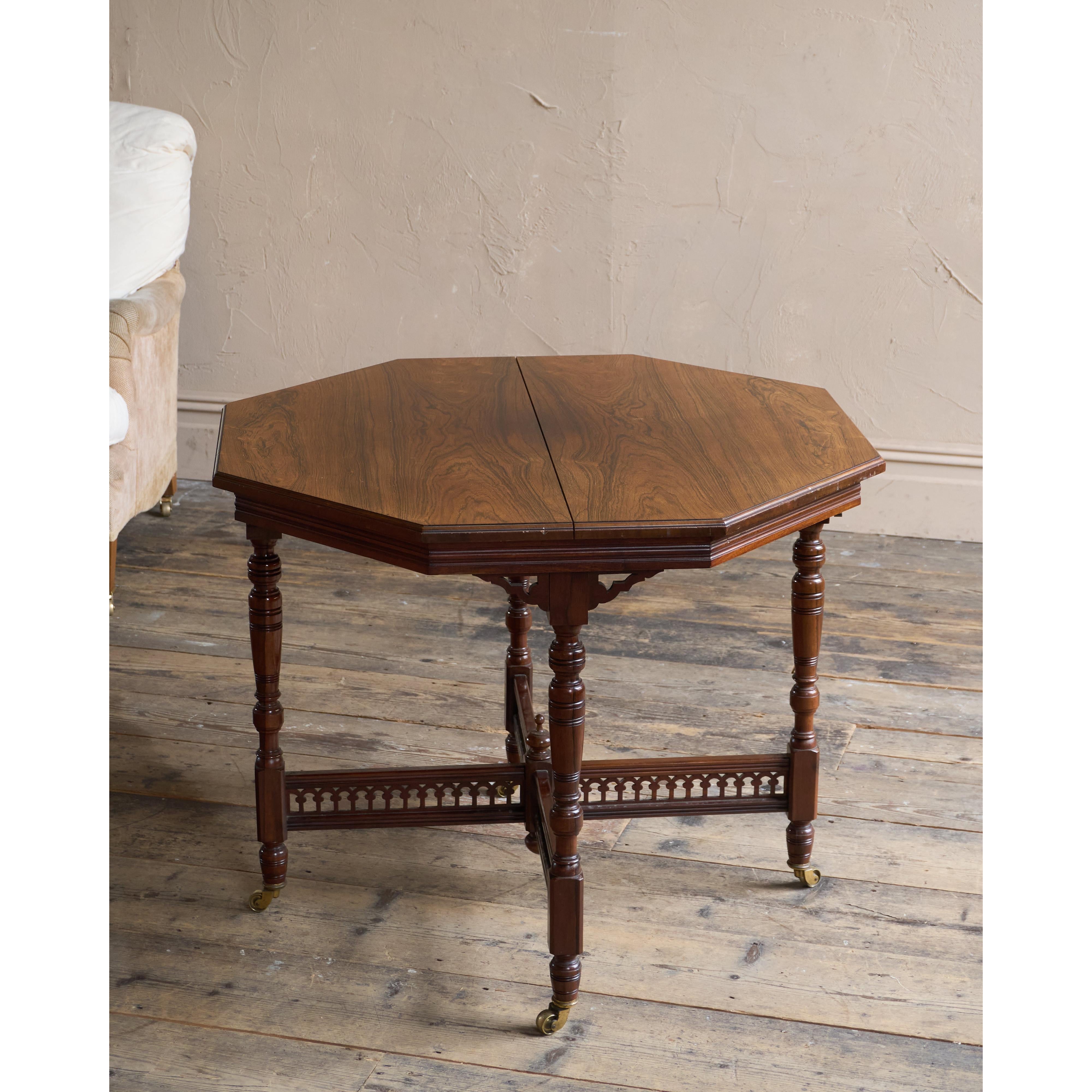 Made from solid rosewood throughout, having an octagonal table top raised on carved and turned legs which have their original cope castors present.